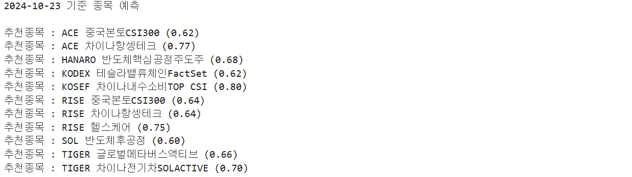 - 최종적으로 예측된 종목과 확률을 출력하여 사용자에게 추천