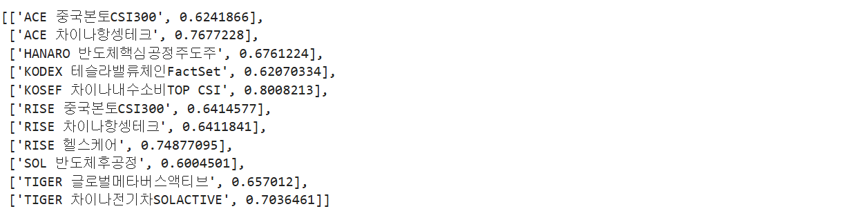 t += f'추천종목 : {i[0]} ({i[1]:.2f})\n'